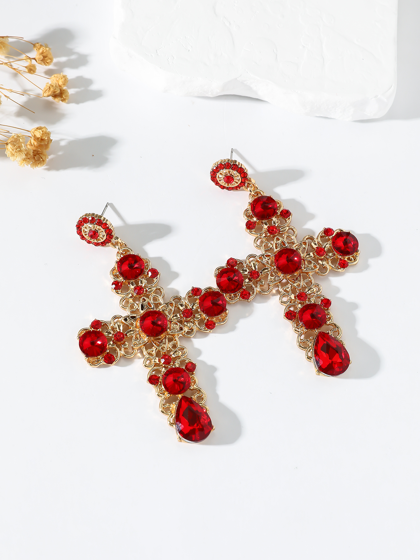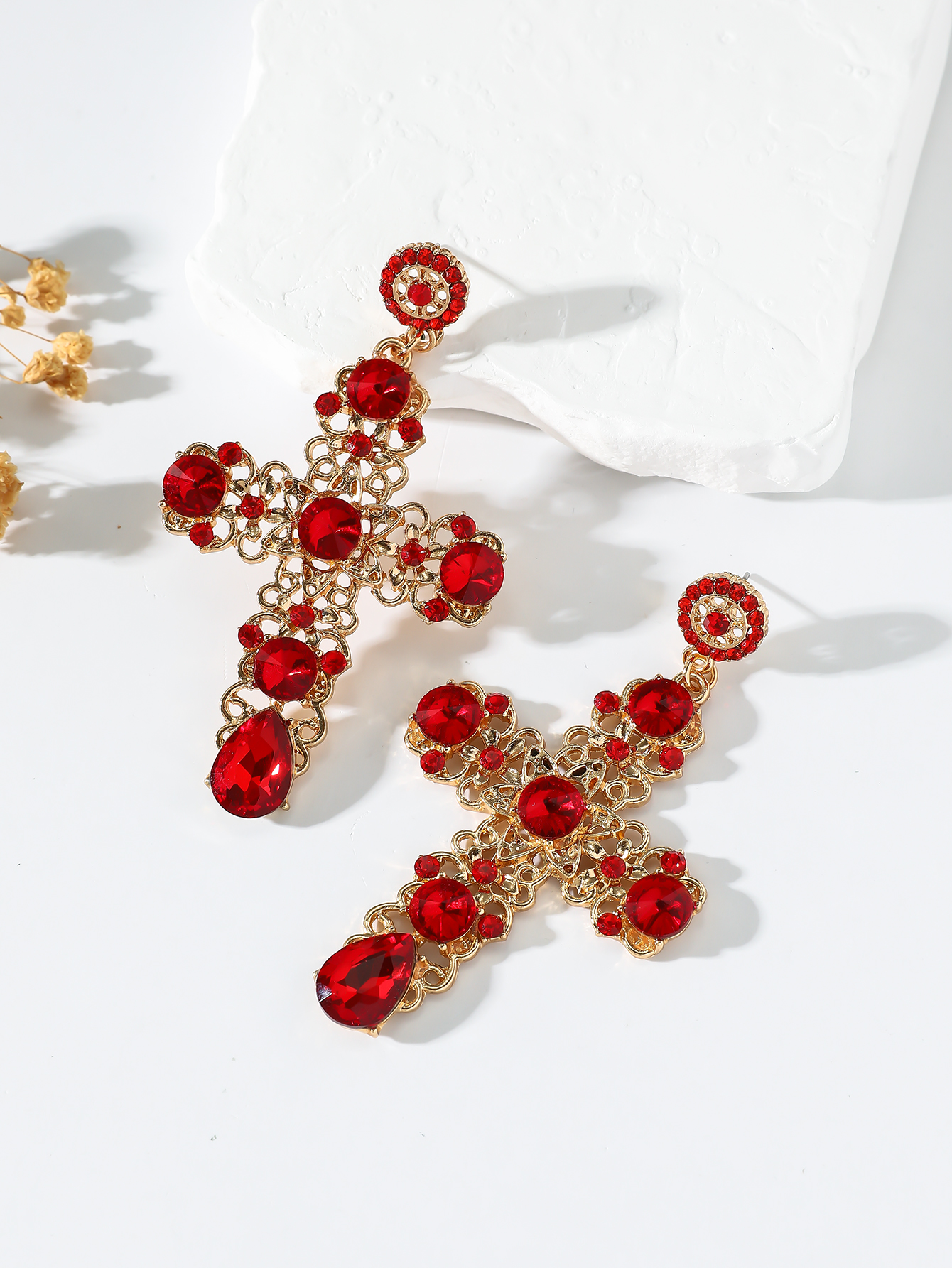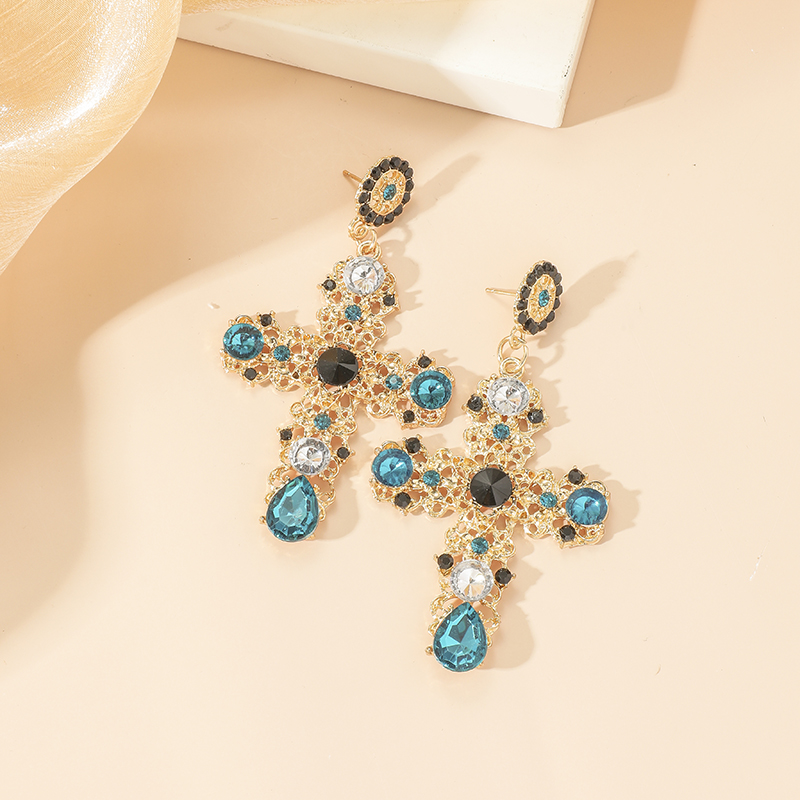 1 Pair Gothic Vintage Black Crystal Cross Drop Earrings, Punk Style Zinc Alloy Jewelry
